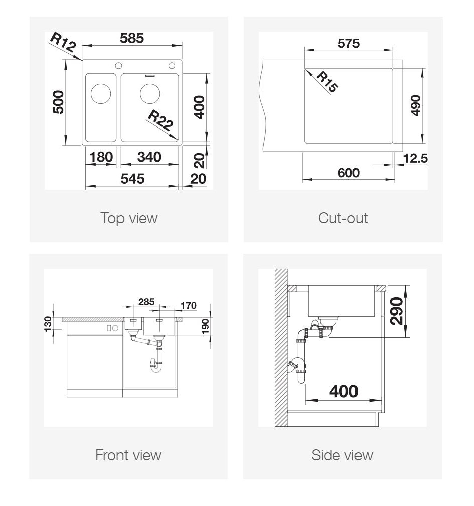 • Dimenzije ukupne sudopere: 580 × 500 mm