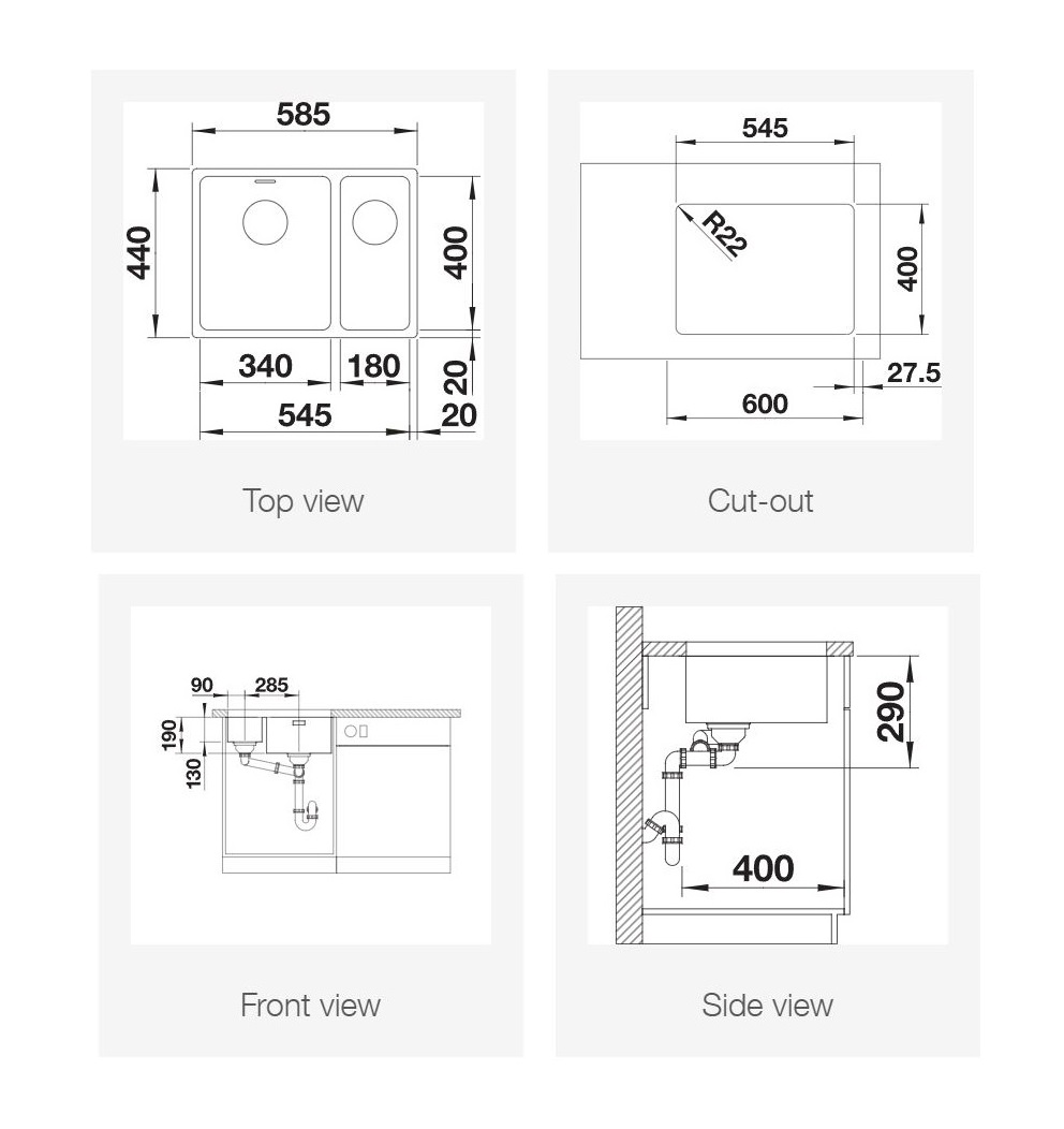 Blanco sudopera ANDANO 340/180-U LH 522979