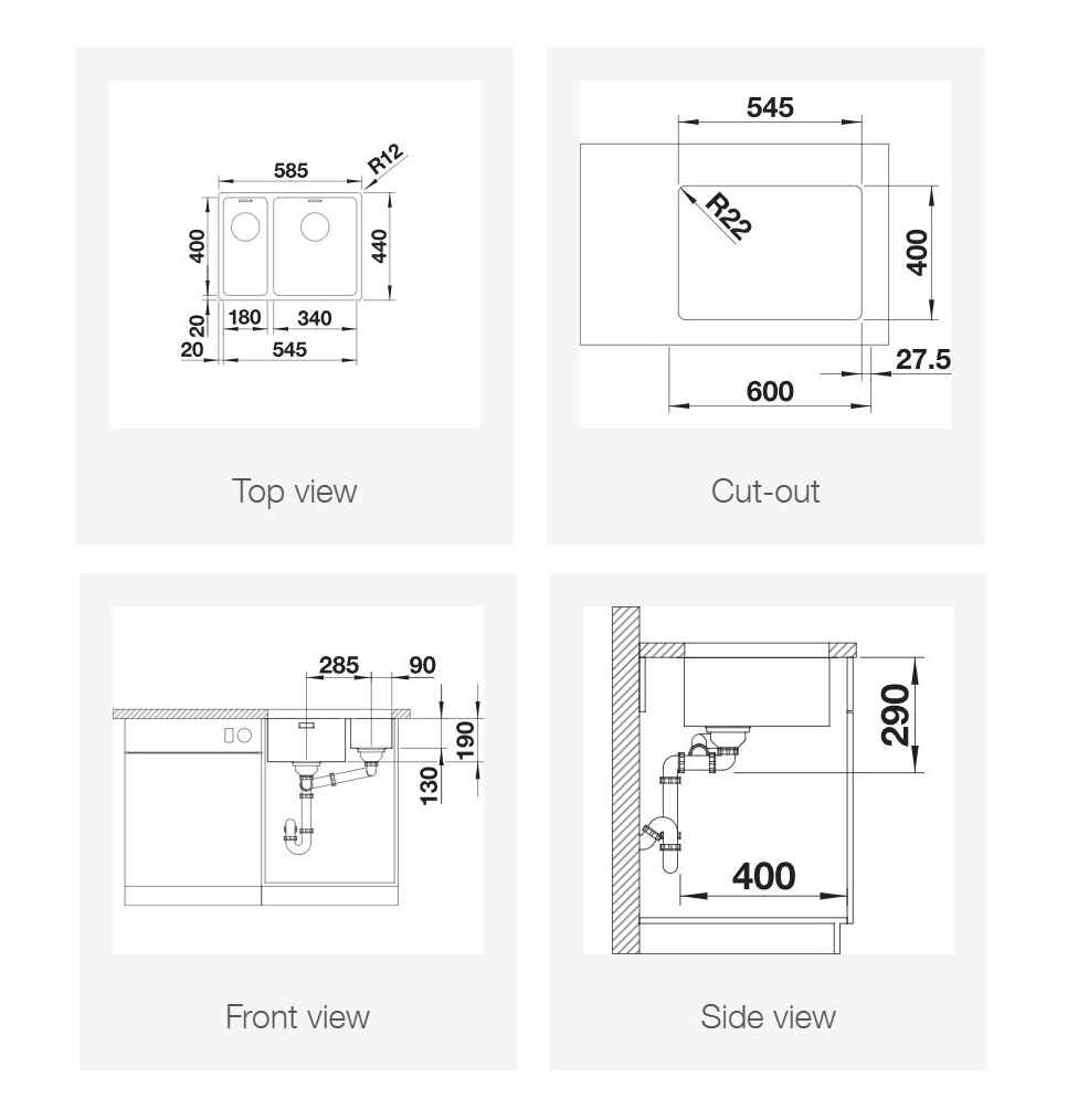 Blanco sudopera ANDANO 340/180-U RH 522977
