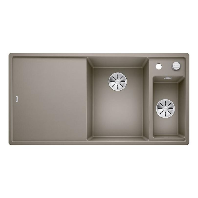 • Uz ovu sudoperu se dobija: drvena daska za rezanje, višenamenska posuda od inoxa, odvodna garnitura sa cevi koja štedi prostor, dva InFino slivnika od 3½'' sa daljinskim podizačem čepa