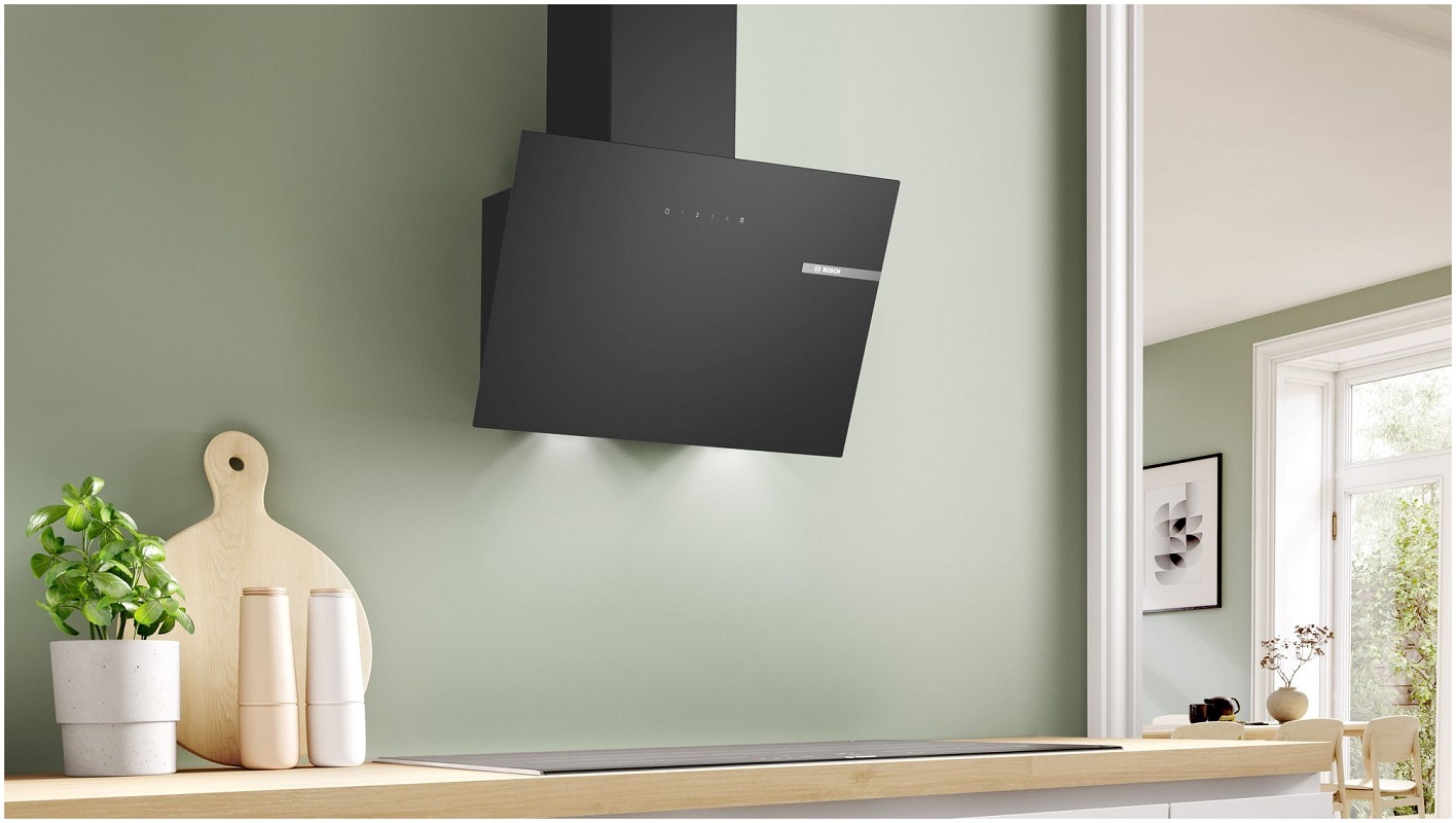 • Dizajn: Nagnut aspirator od crnog štampanog stakla za zidnu montažu.