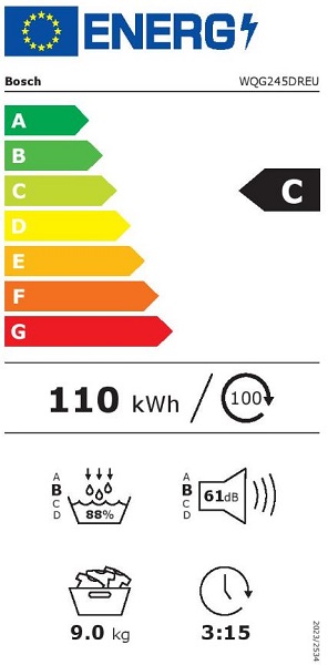 • Ponderisana prosečna potrošnja energije na 100 ciklusa sušenja u kWh u Eco programu: 110 kWh