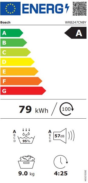 • Potrošnja energije: 79 kWh (Ponderisana prosečna potrošnja energije na 100 ciklusa sušenja u kWh u Eco programu)