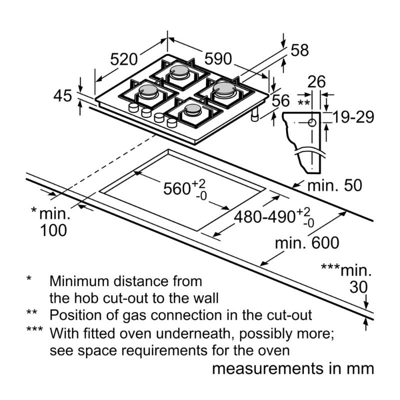 • Dimenzije niše (VxŠxD): 45 x 560 x (480–490) mm