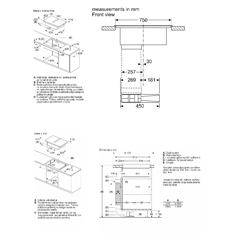 • Dimenzije niše (VxŠxD mm): 223 x 750 x (490 - 490)
