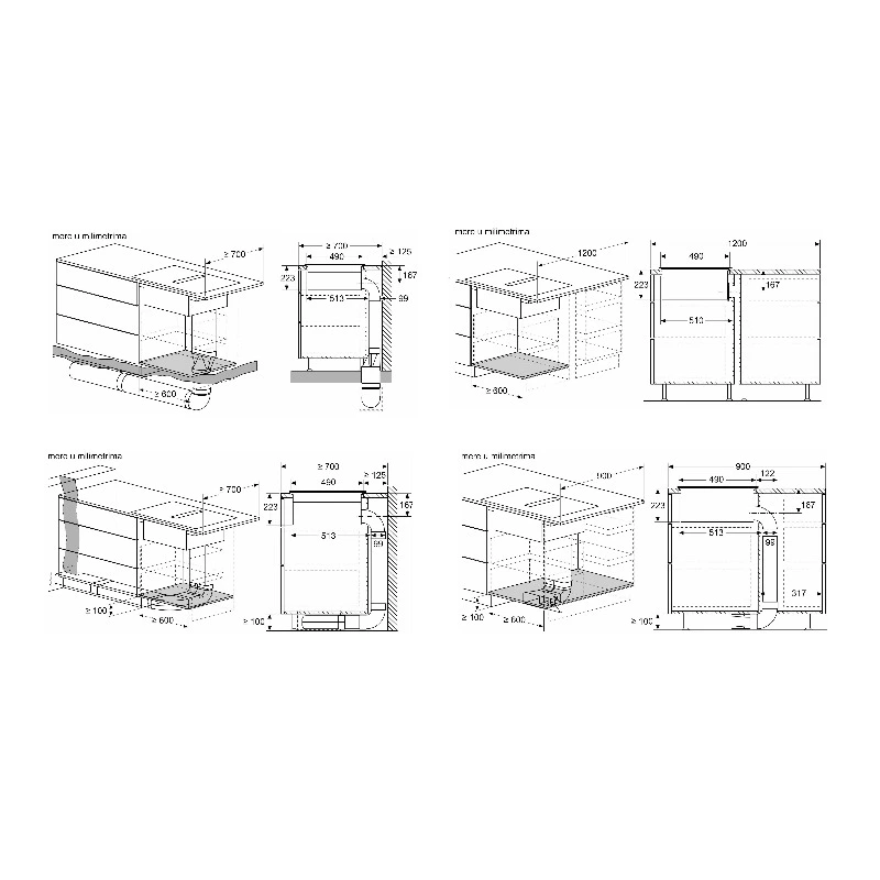 • Fioke i police ispod ploče moraju biti uklonjive; zadnji panel elementa ne mora biti uklonjen, dovoljan je otvor za vazduh.