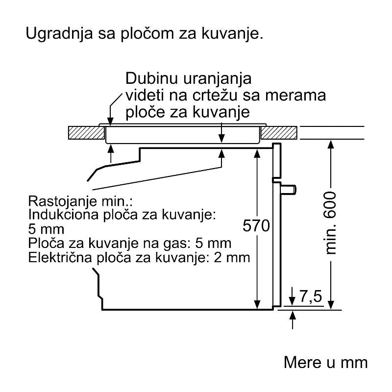 • Dimenzije niše (VxŠxD): 585–595 × 560–568 × 550 mm.