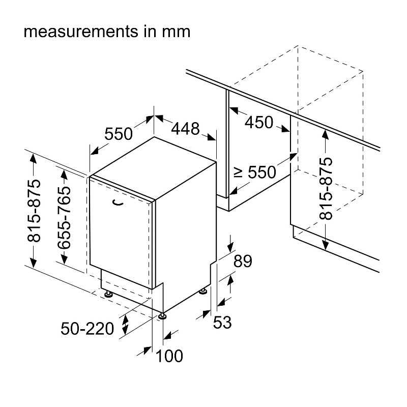 • Minimalna širina za montažu: 450 mm
