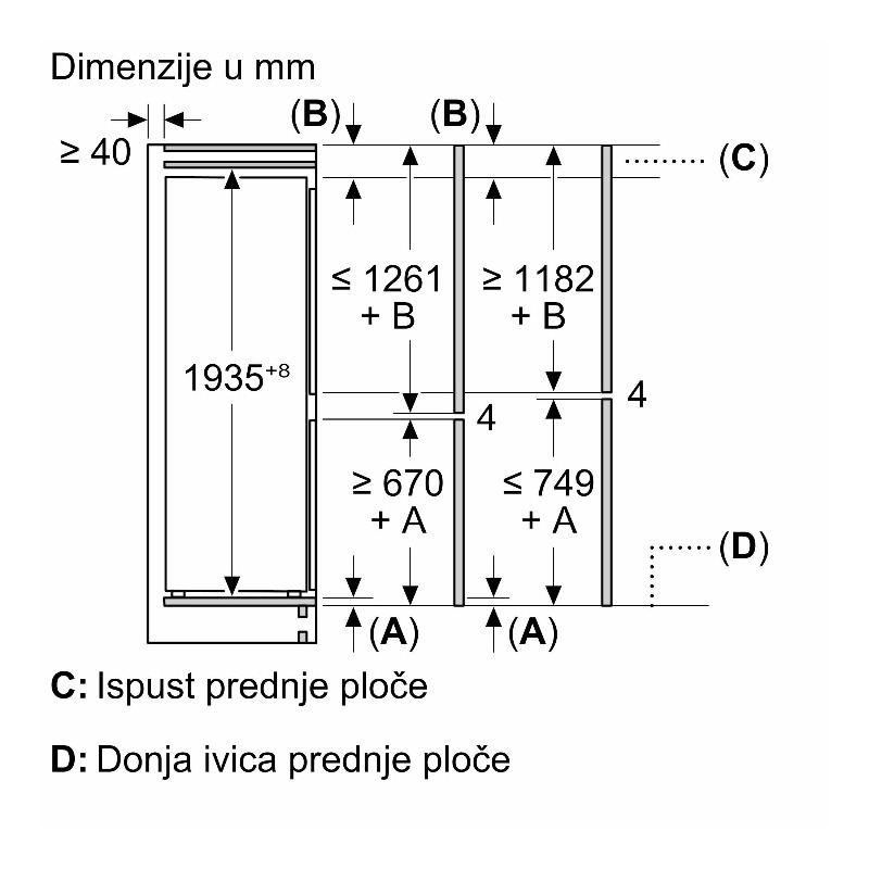 • Broj površina za odlaganje (frižider): 5 (od toga podesivih po visini 4)