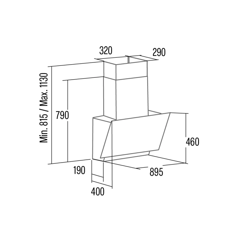 • Minimalna udaljenost od gasne ploče: 650 mm