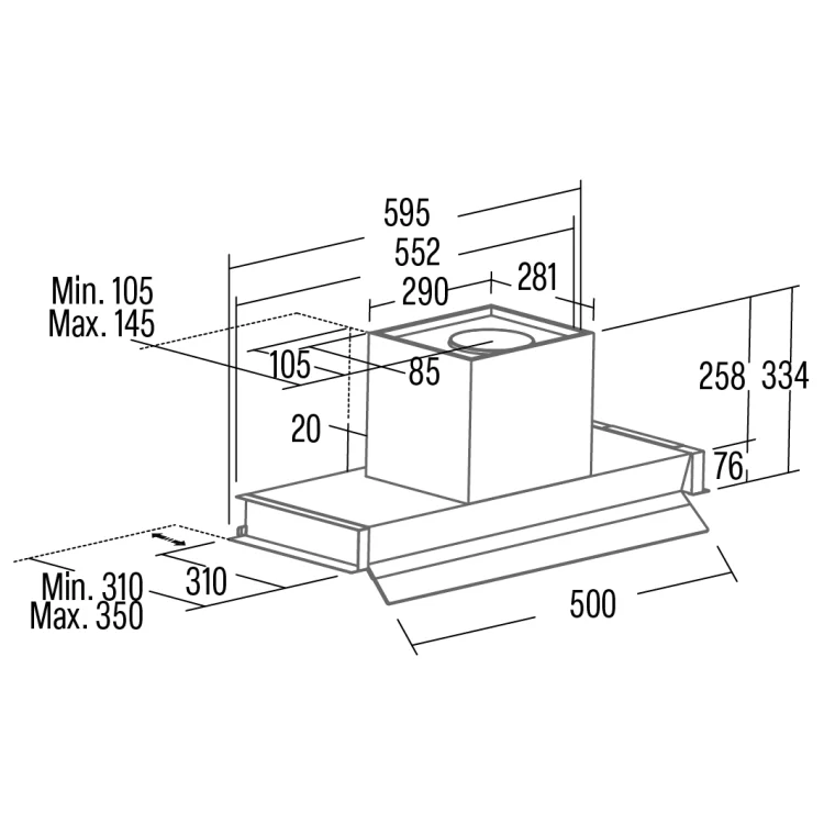 • Minimalna udaljenost od gasne ploče: 650 mm