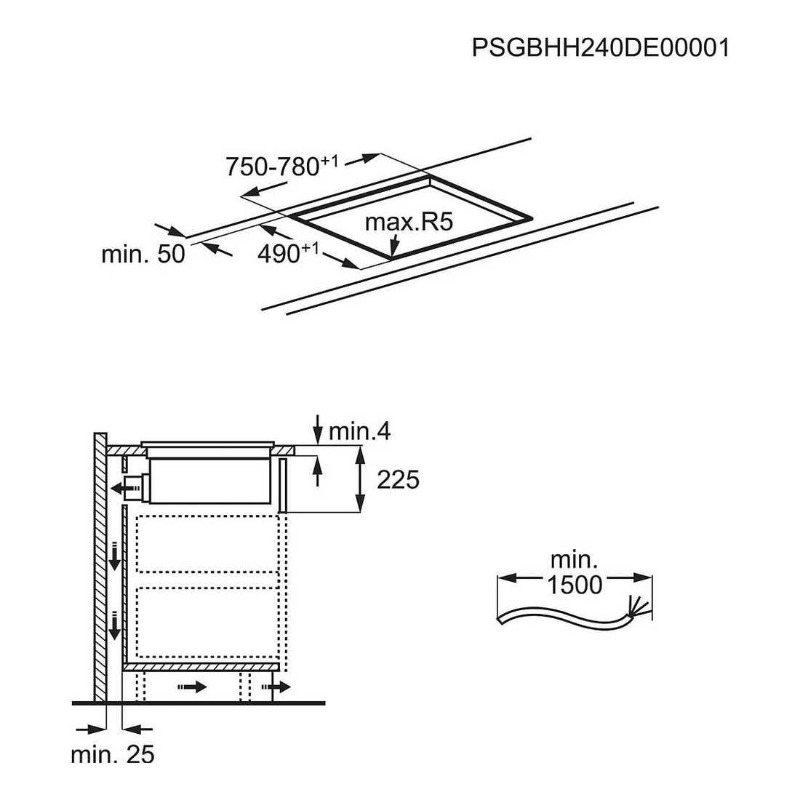 • Ugradne dimenzije u cm: 22,5 on top x 49 D x 75-78 Š, Priključak: Kabel 1,5m bez utikača; 5 x 1,5mm2;  2xN spajanje; 2x 16A;