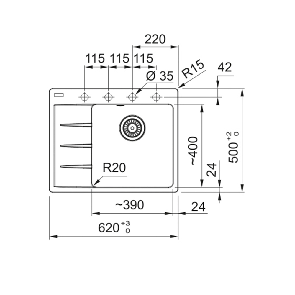 • Dimenzije otvora za montažu (mm): 600×480 (R15)