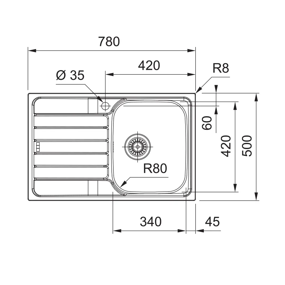 • Spoljašnje dimenzije – dužina (mm): 780