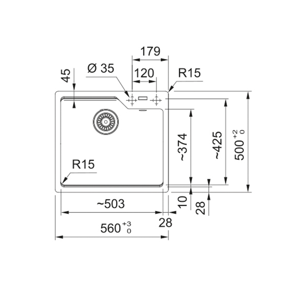 • Dimenzije otvora za montažu (mm): 540×480 (R15)