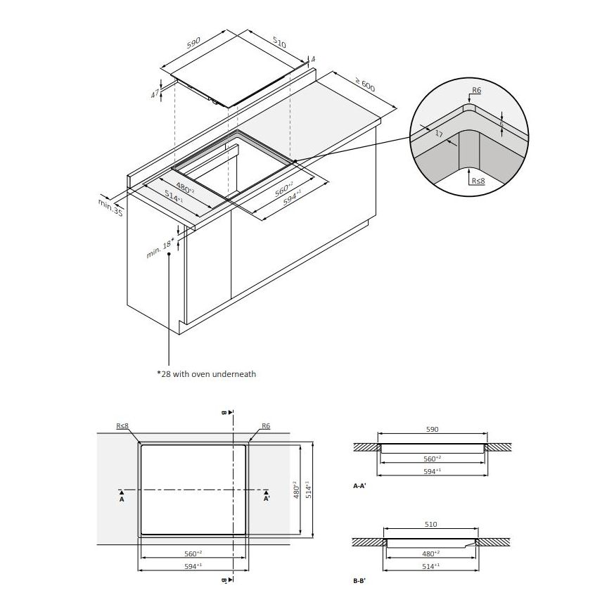 • Zahtevana dimenzija proreza za instalaciju (mm): 560 × 480 × 47