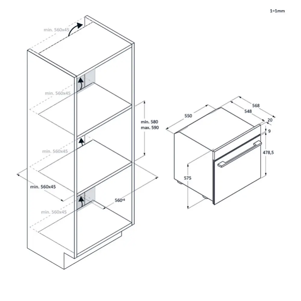 • Dimenzije prostora za instalaciju (mm): 590 × 560 × 560