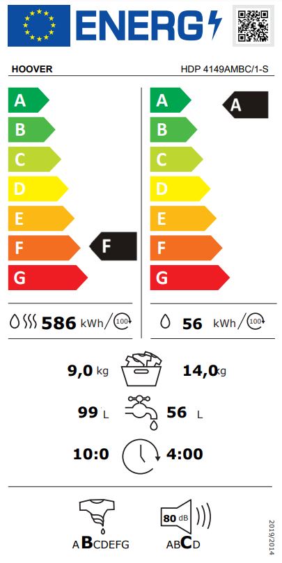 • Klasa energetske efikasnosti - pranje i sušenje: F