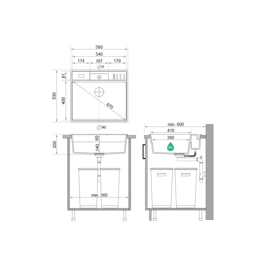 • Napomena: Sudopera se isporučuje bez inox poklopca za sifon