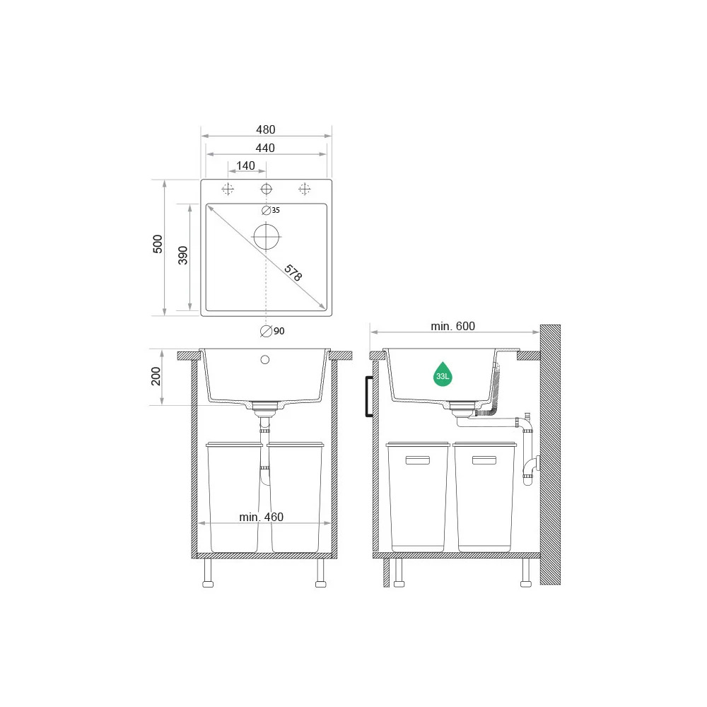 • Napomena: Sudopera se isporučuje bez inox poklopca za sifon