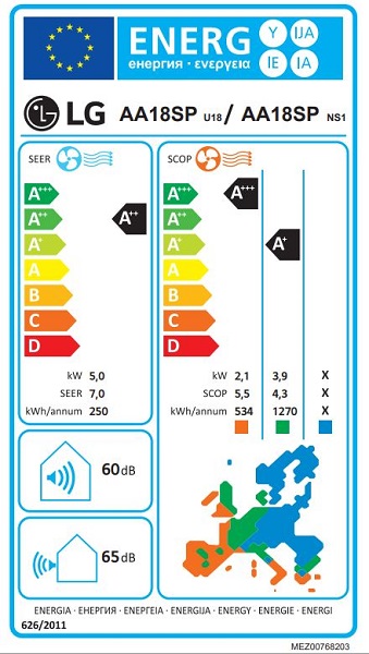 • Nivo zvuka – grejanje SH/H/M/L/SL (dB(A)): 50 / 44 / 39 / 34 / 0: