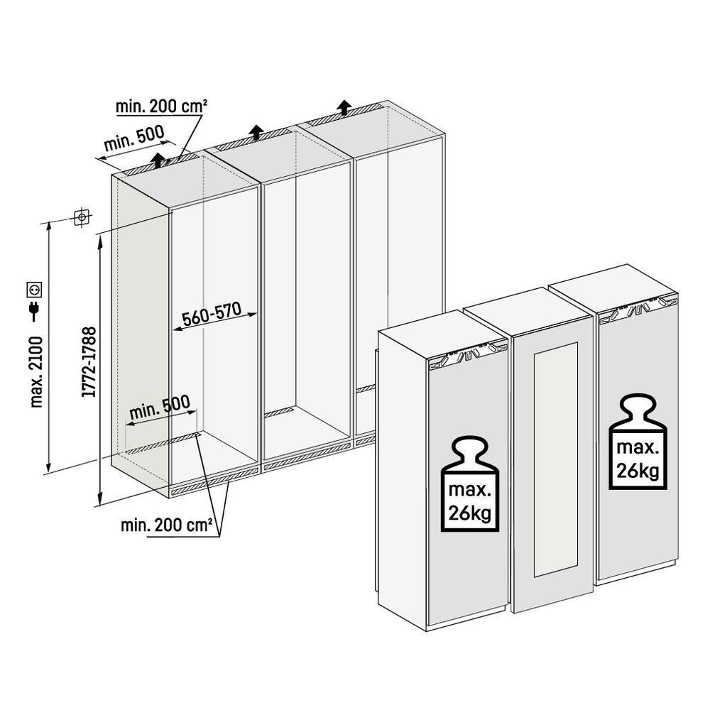 • Dimenzije otvora visina/širina/dubina:  177,2 - 178,8 / 56 - 57 / 55,0 cm