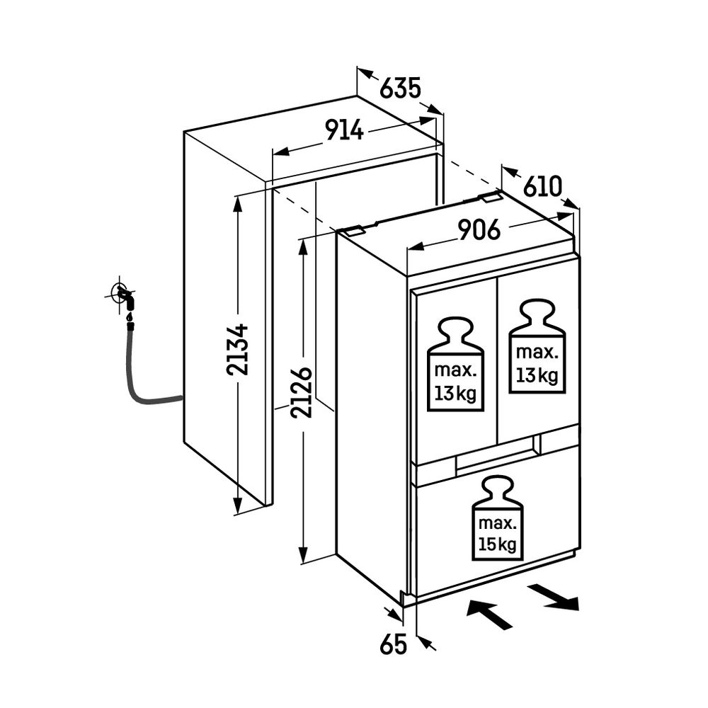 • Dimenzije za ugradnju (V x Š x D): 213.4 x 91.4 x 63.5 cm