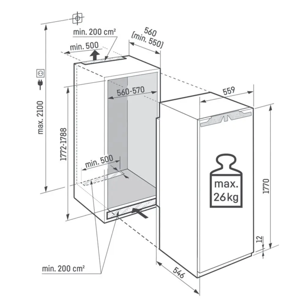 • Dimenzije niše (V/Š/D): 177,2–178,8 / 56–57 / 55 cm