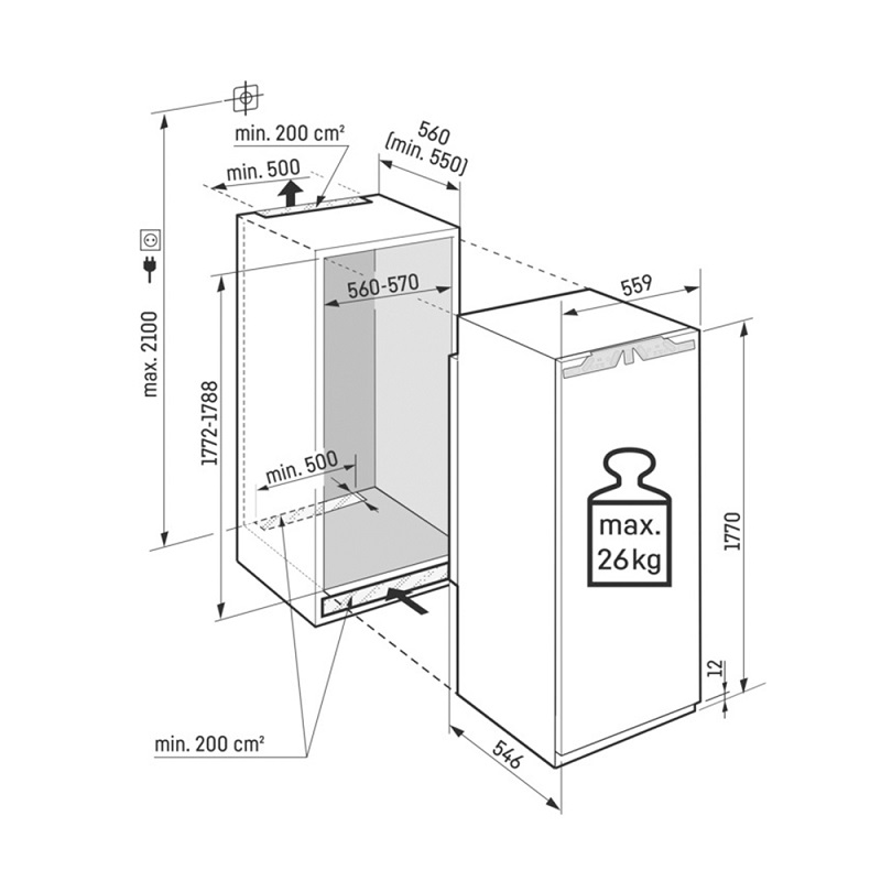 • Dimenzije niše (V/Š/D): 177,2–178,8 / 56–57 / 55 cm