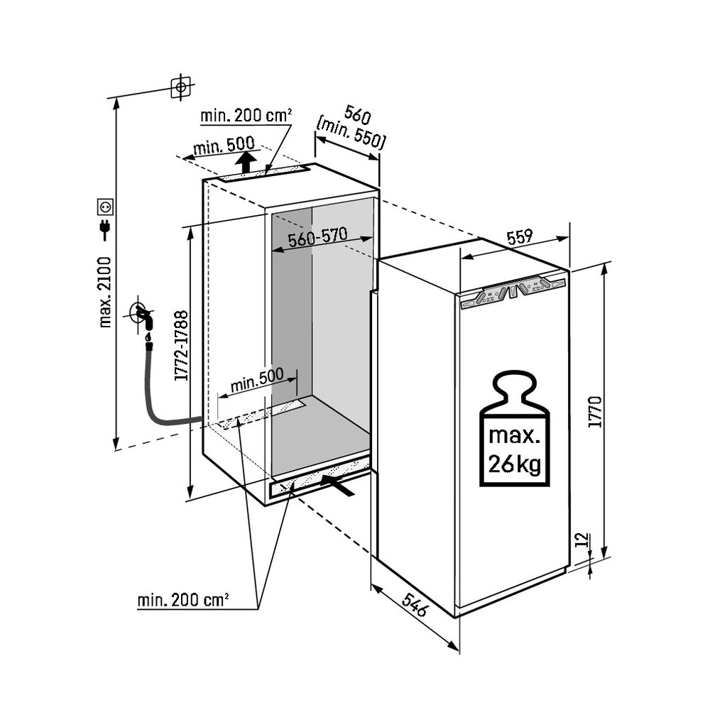 • Dimenzije za ugradnju (VxŠxD): 177.2–178.8 x 56–57 x 55 cm
