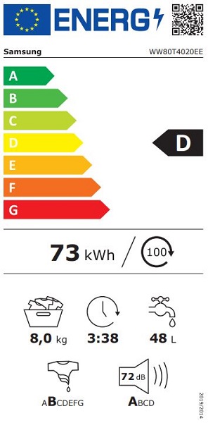 • Potrošnja energije (100 ciklusa): 73 kWh